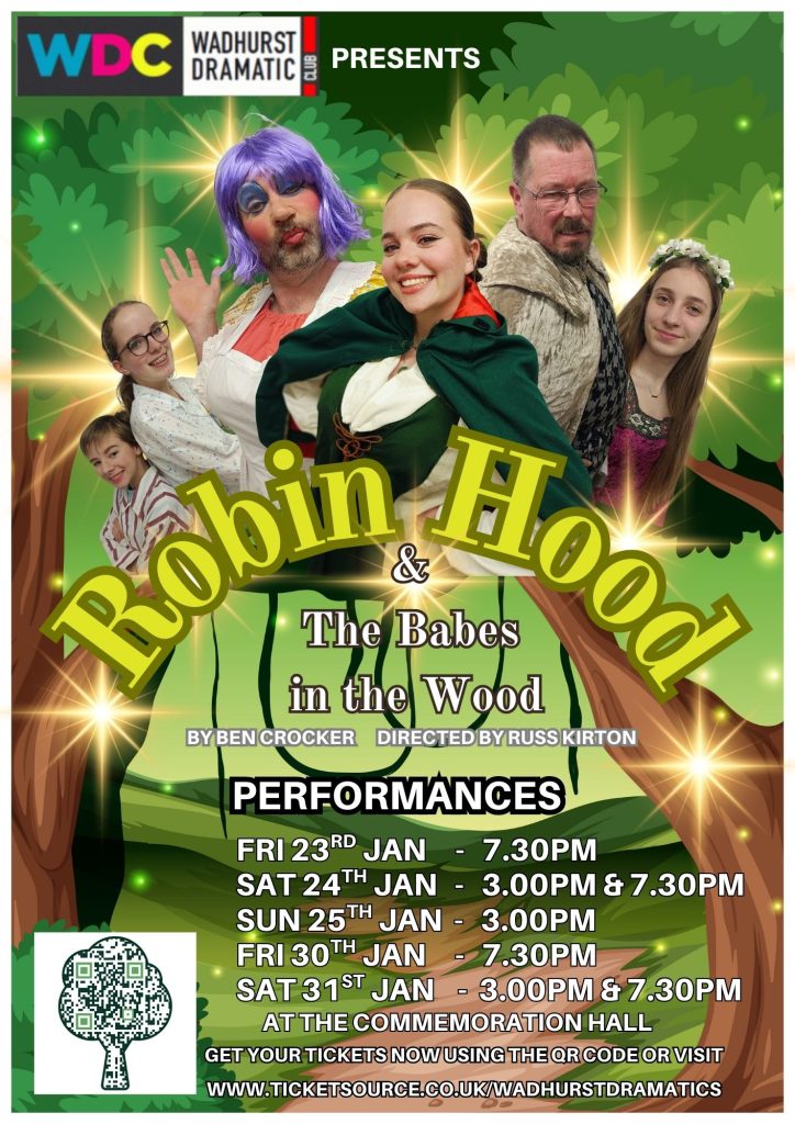 A production by Wadhurst Drama Club – Come and see Robin Hood and the Babes in the Wood at the Commemoration Hall, Wadhurst.